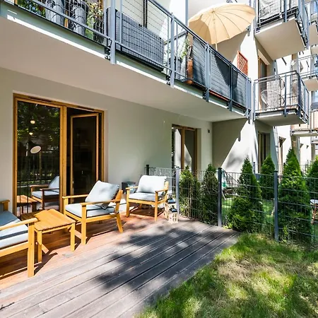 The apartment offers guests the convenience of self-catering facilities, including an electric kettle, a refrigerator, and an oven. The accommodation is a short way from Warszawa Zwirki i Wigury train station.